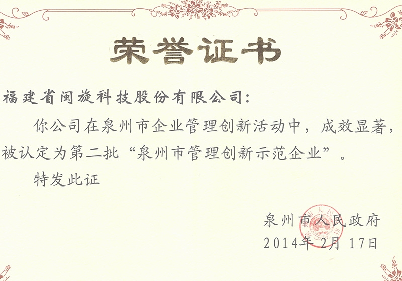 泉州市治理立异树模企业